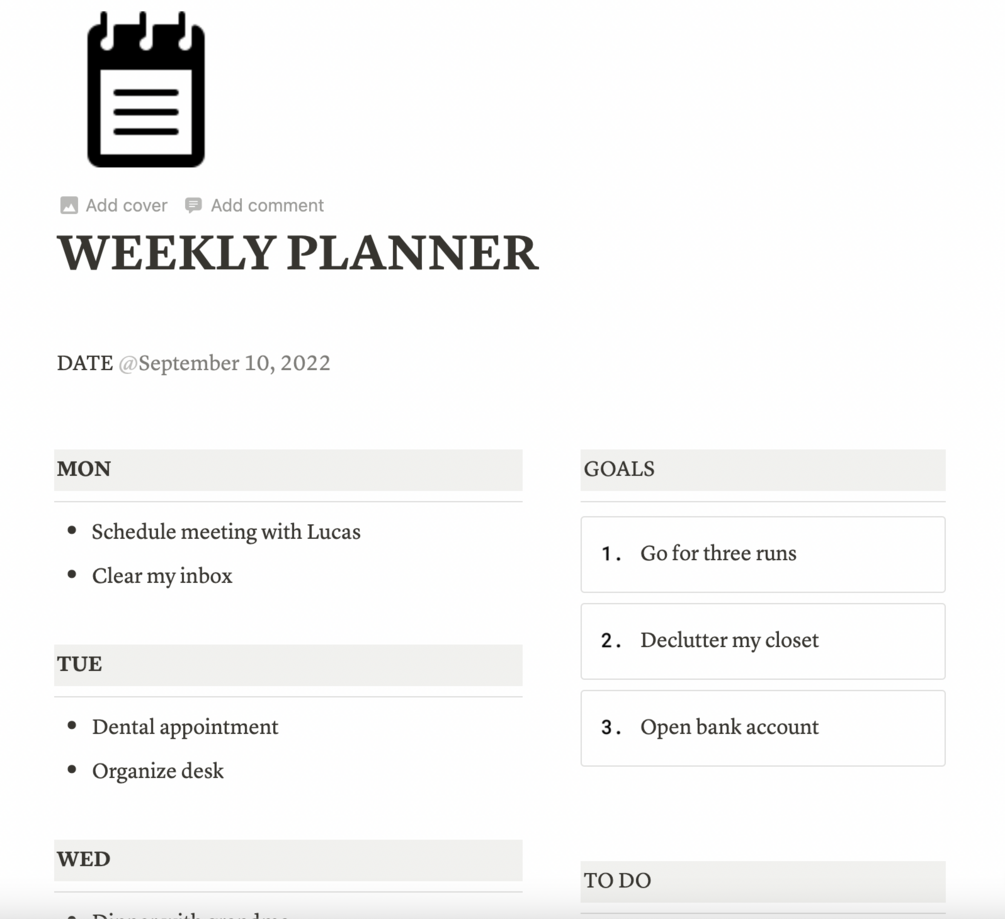 Weekly planner that contains goals for the week, a to-do list, reflection, and a section for each day of the way to organize your tasks. Perfect for anybody who wants an affordable online planner!